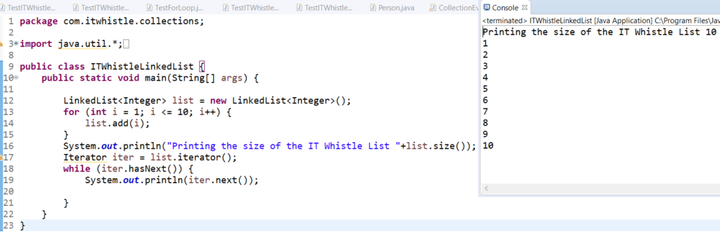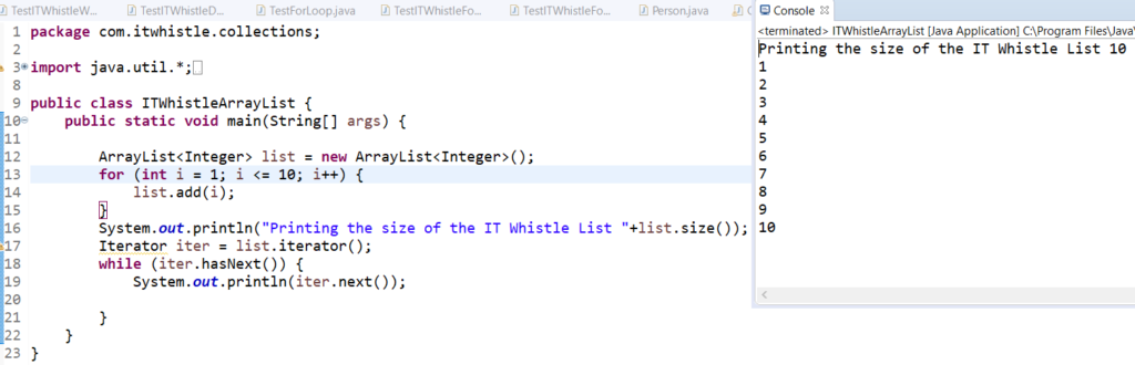 System.out.println("Printing the size of the IT Whistle List "+list.size());