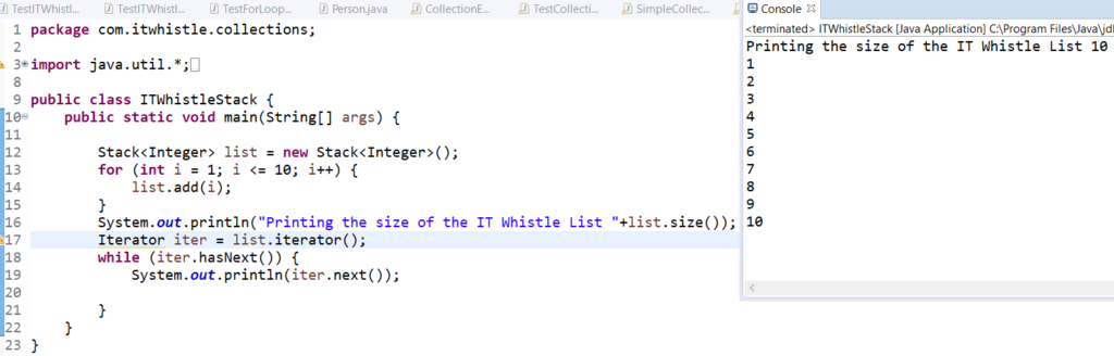 P.S IT Whistle Java collection page covers the basic hierarchy of collection framework with important java classes with examples required for Java development or automation testing