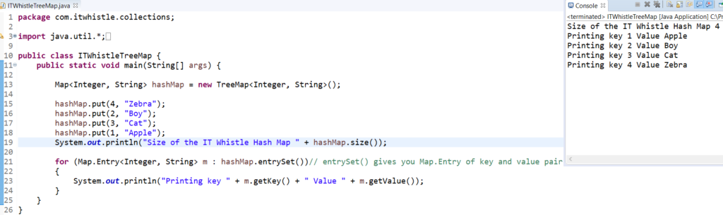 System.out.println("Printing the size of the IT Whistle Hash Map " + hashMap.size());