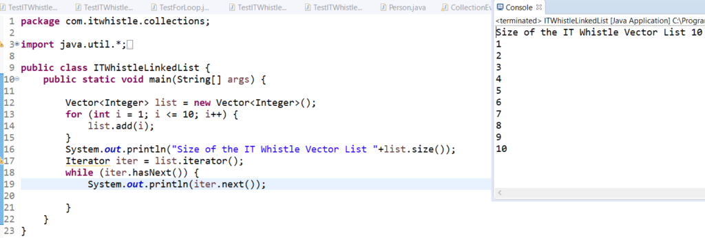System.out.println("Size of the IT Whistle Vector List "+list.size());
